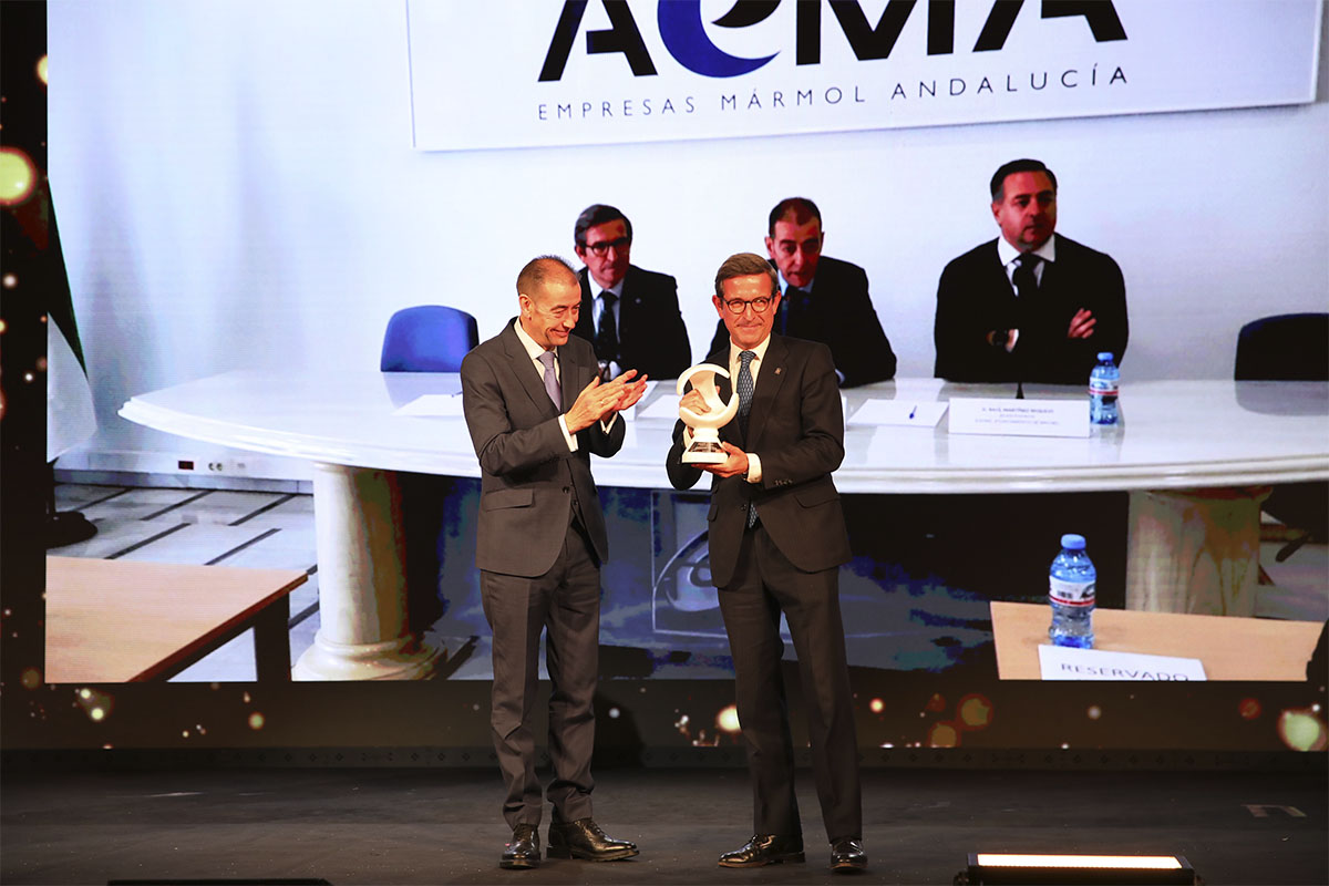 El Jurado concede el Premio Institución a la Consejería de Industria, Energía y Minas de la Junta de Andalucía por la puesta en marcha del Plan Cadena de Valor Crece Industria para el Sector de la Piedra y el Mármol de Andalucía, dotado con 18,8 millones de euros en incentivos destinados a fortalecer la competitividad de las empresas a través del proyecto tractor “Modernización productiva y sostenibilidad de la industria de la piedra y mármol de Almería”, contribuyendo a la transformación y consolidación del sector de la piedra y el mármol como un pilar de sostenibilidad y desarrollo. Asimismo, se reconoce la celebración del Programa de Promoción de la Industria de la Piedra Natural y Superficies Innovadoras, enfocado a estudiantes de arquitectura, una iniciativa que fomenta el conocimiento y la valoración de nuestra industria entre las nuevas generaciones de profesionales. Financiado íntegramente por la Consejería, el programa cuenta con la participación de alumnos de posgrado y máster de las universidades públicas de Andalucía de Sevilla, Granada y Málaga.